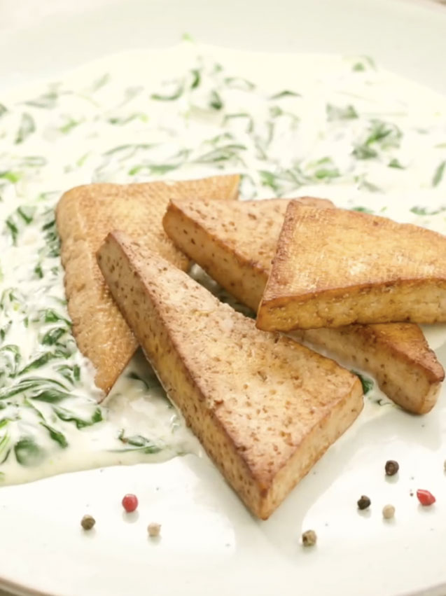Omáčku servírujeme s pečeným tofu.